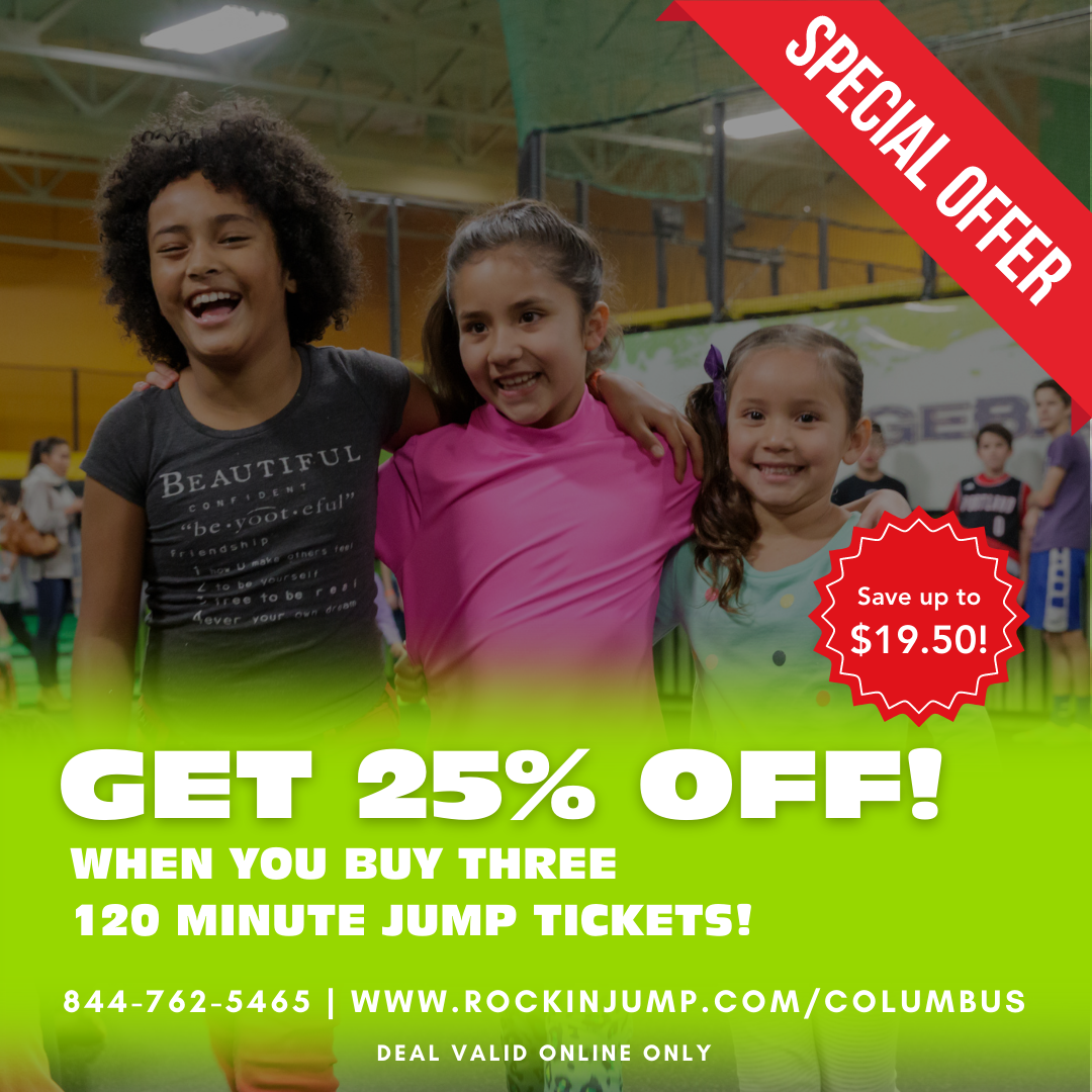 Bring three friends to Rockin' Jump and Get 25% OFF your entire order!