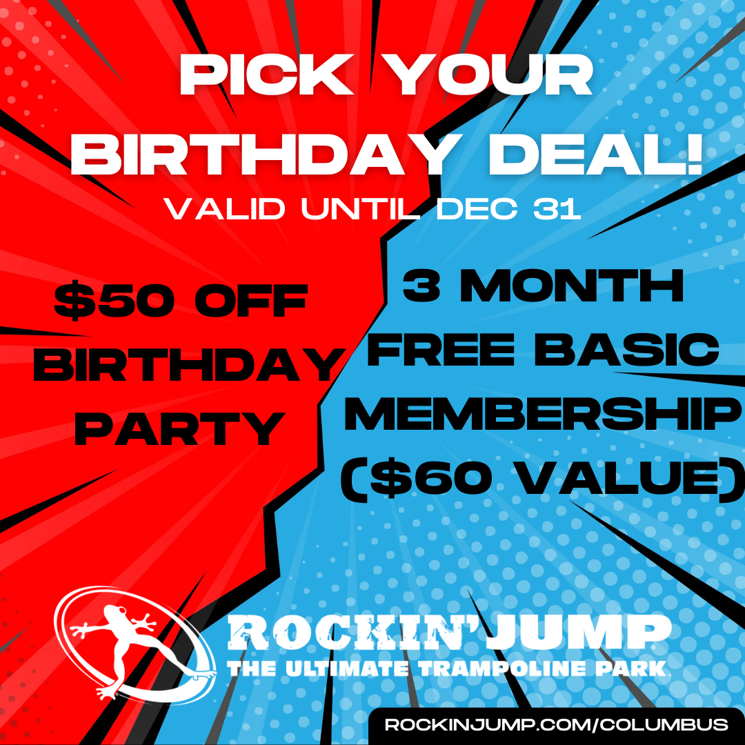 When you purchase a birthday party package, you can choose between either of the following deals: