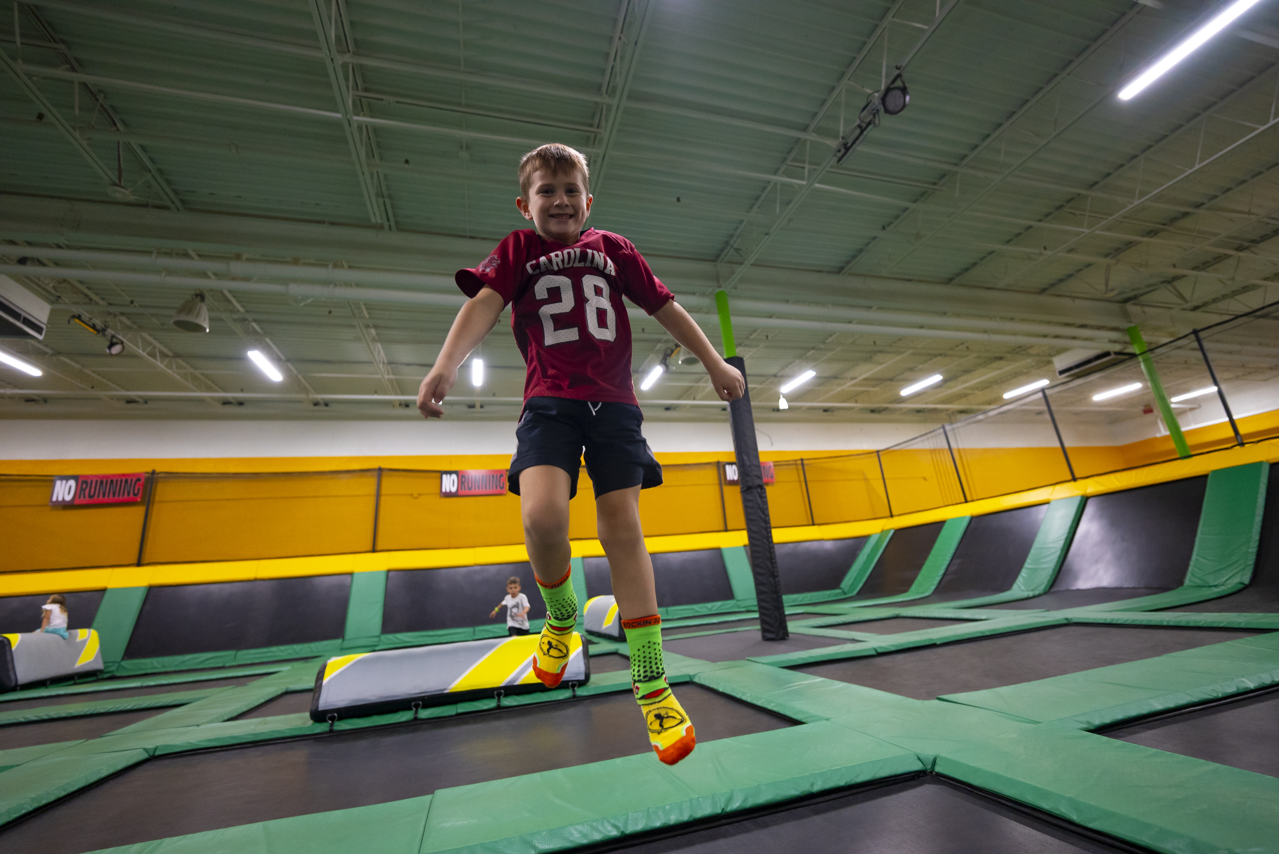 Soar in open jump arenas, race across our Traverse Climbing Wall, challenge yourself on our Ninja Warrior courses, play and EPIC game of trampoline dodgeball and do flips and tricks into our incredible stunt bag. Plus jousting, basketball dunking, video games and a scrumptious full-service pizza café. We are the perfect for birthday parties, school functions, fundraisers and family gatherings, where quality food and private party rooms are guaranteed.